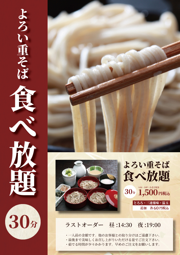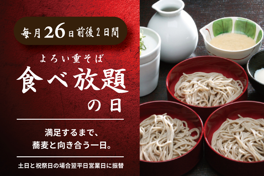 毎月26日(前後2日)よろい重そば食べ放題 限定販売